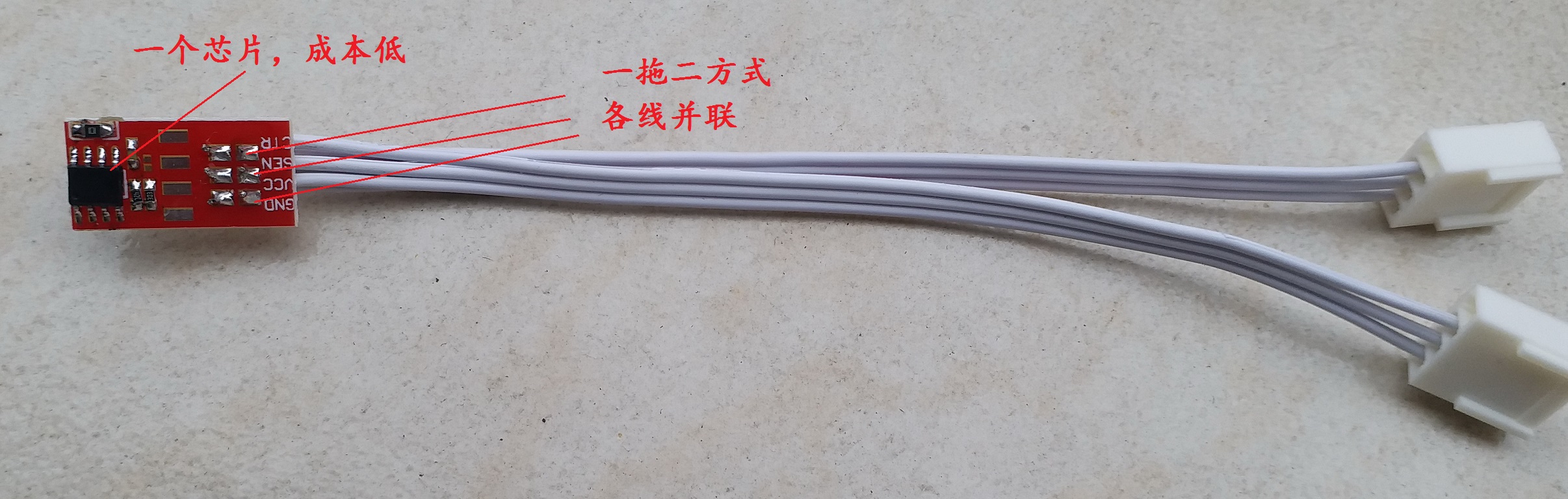 定速款(又称三线款):通过上面知识,三线模拟器只能实现定速(缺少控制线),一般固定在5000-6000转。 实现方式简单,成本便宜,而且不用检测PWM信号线,可以通过并联工作来 实现一拖二(即一个模拟器来连接多个风扇接口,实际是里面是并联的。)。